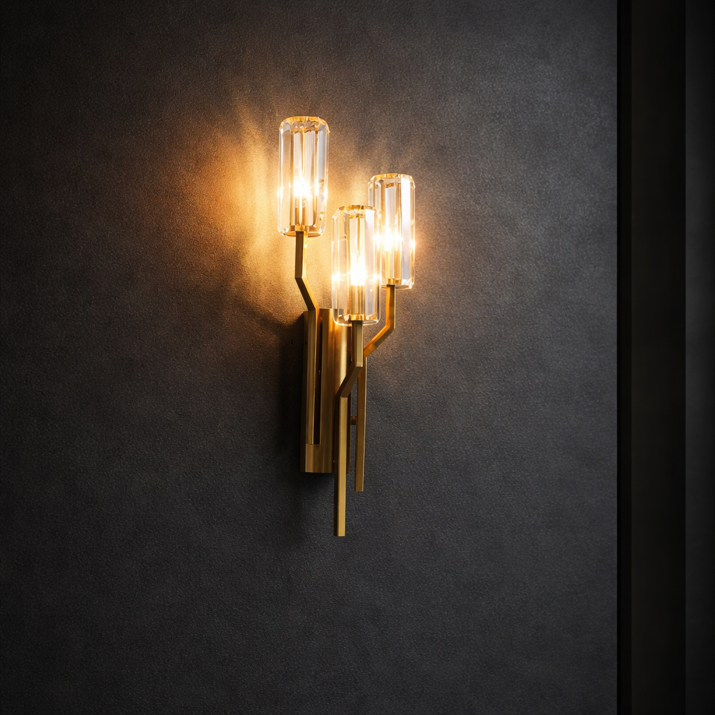 Crystal copper light, designed with glass and crystal accents, this copper wall sconce creates a warm and luxurious glow, perfect for bedrooms, cafes, and restaurants.