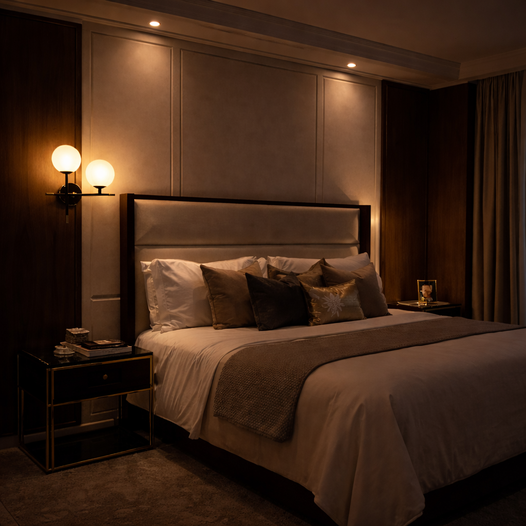 A round wall sconce with a sophisticated black & gold finish. This premium ball wall light features integrated 3-color LEDs (White, Warm White, and Natural White), allowing you to create the perfect ambiance in your living room, bedroom, or hallway.