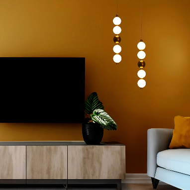 The glass sphere light features four frosted glass balls on a sleek gold body, creating a modern yet timeless aesthetic. With 3-color LED options and adjustable height, this hanging sphere light is perfect for any space..