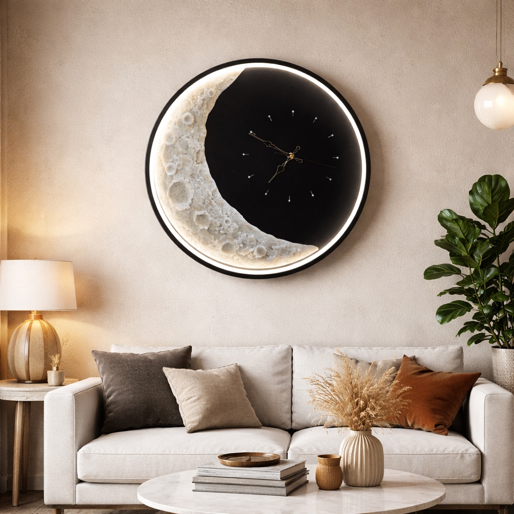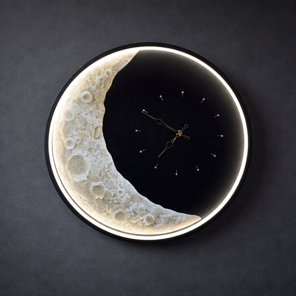This Moon Wall Light combines modern LED lighting with a functional wall clock, offering a perfect balance of style and utility. Featuring 3 color modes, it brightens any space with a soft, ambient glow.