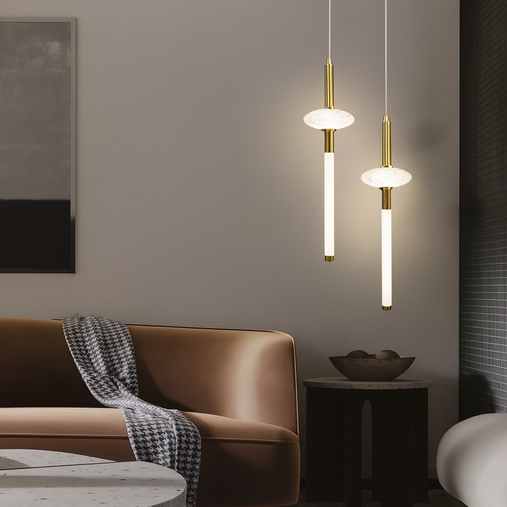 Upgrade your lighting with the Sleek Sword Light, a minimal and elegant LED pendant.. With 3 colour-changing modes and adjustable height, it brings sophistication and function to spaces.