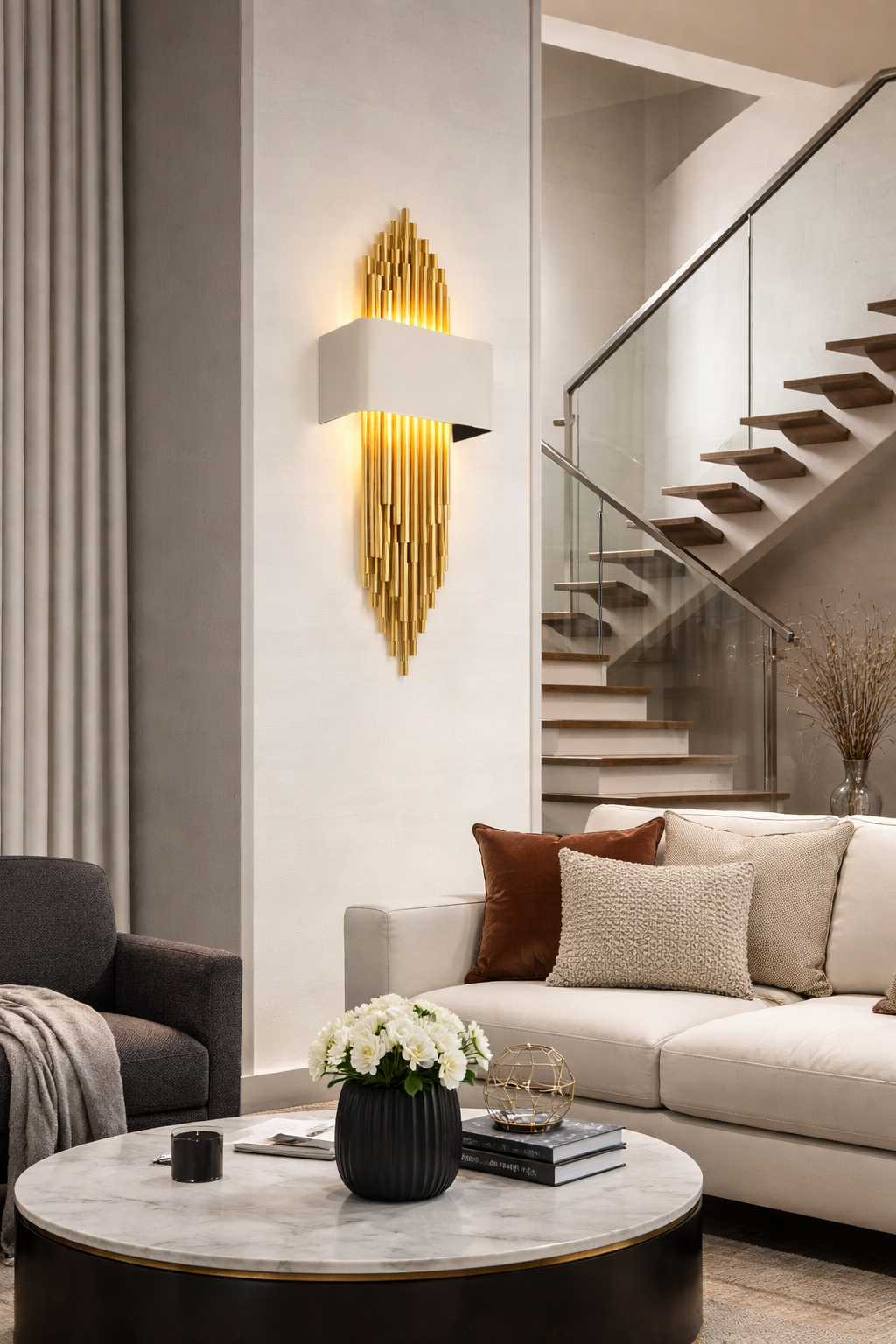 This modern wall light features a sleek, minimal design that enhances your interiors with soft, balanced illumination.